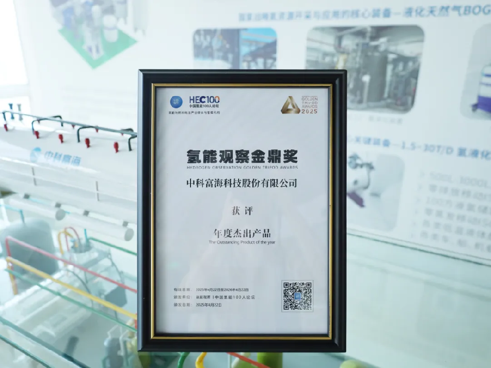 已投項(xiàng)目中科富海榮獲氫能觀察 “金鼎獎(jiǎng)”